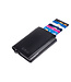 ✔ Slim design – Aluminium kaarthouder voor 6 pasjes + extra ruimte voor 9 pasjes in de leren omslag.